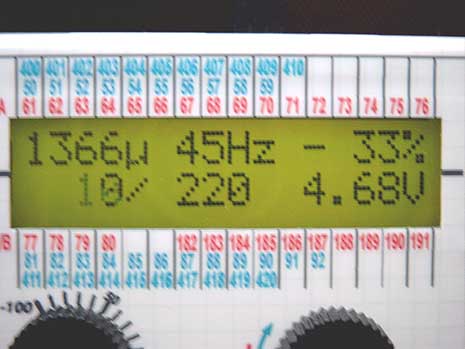Foto: Piotr Piechowski Pomiar impulsu. Serwo C-5077. Tu zmierzone 45 Hz jest idealną wartością dla serw Graupnera. |
