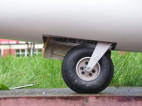 Podwozie główne modelu jest chowane i posiada system amortyzacyjny. Zostało wykonane ono samodzielnie wg. systemu opublikowanygo przez niemieckiego modelarza - Ingo Seiberta. Zastosowałem kilka zmian i usprawnień co do geometrii oraz materiałów zastosowanych w tym mechanizmie. Koło ogonowe piankowe 65x10, koło główne Sulivan 4`` z aluminiowa felgą. Dysponowałem znakomitym kołem Fema 100 mm lecz różnica 32 gramów na korzyść ”Amerykanina” była znacząca dla mechanizmu wykonawczego podczas zamykania podwozia. Koła do dużych modeli to zupełnie osobne zagadnienie.