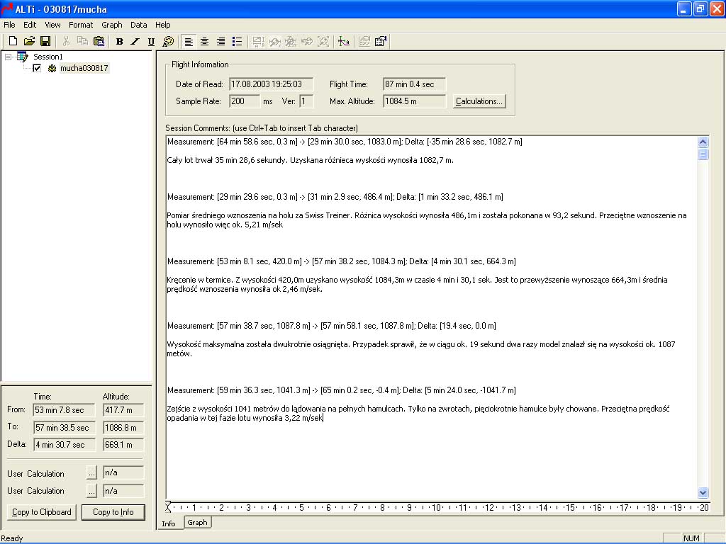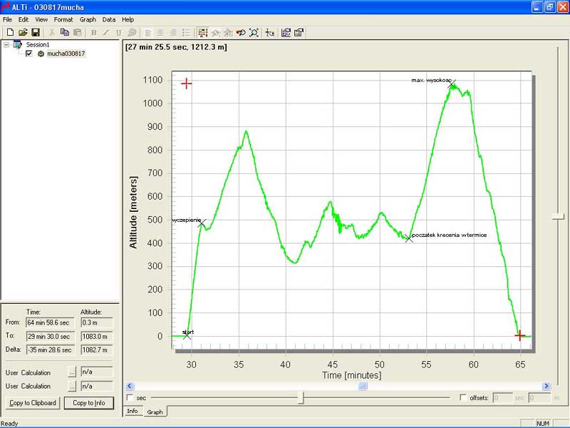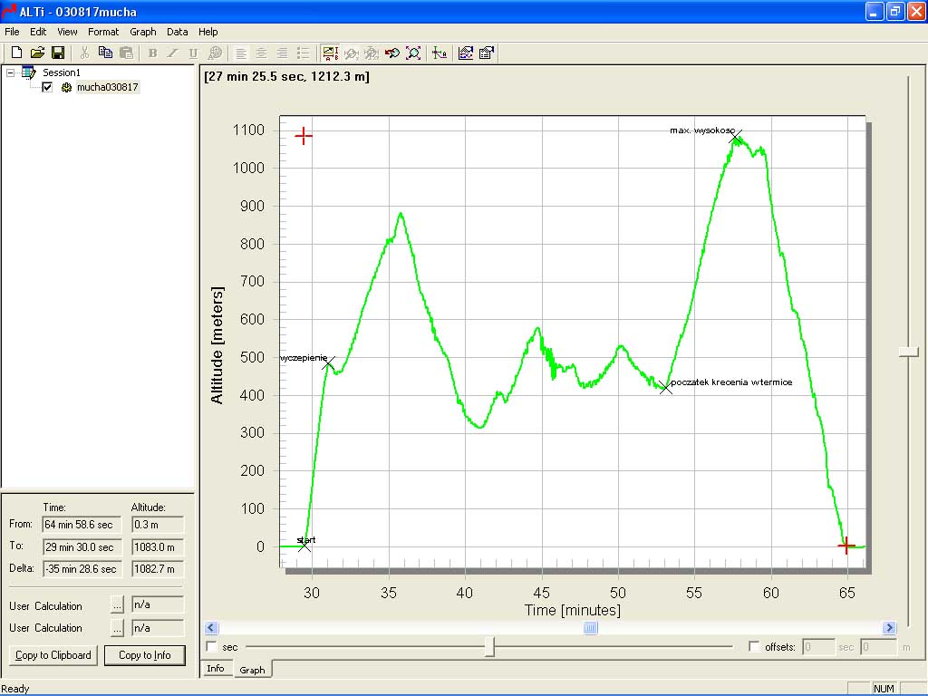 termicznych lotów mojego szybowca "Mucha", zobaczymy jak taka analiza lotu może